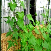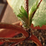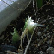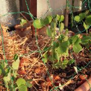 デブの鳥が来て葉っぱを食べていくらしく、茎が「ばきぼき」に折れていく。紐でしばりつけて、折れたところの傷が広がらないようにしてみた。