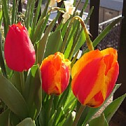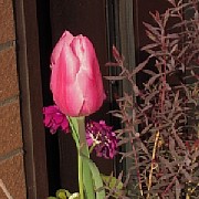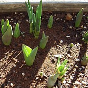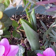真ん中から、チューリップらしきものが出現している。