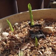 ツタンカーメンのエンドウのプランターには、いろいろ生えている。