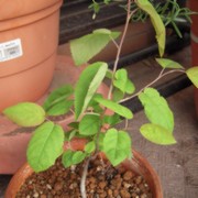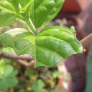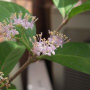 不自然な擬態をする尺取り虫と、食べられたコムラサキシキブの葉。