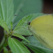 ハギにまとわりつくキチョウ。よく見ると卵。