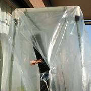 夏に使った朝顔棚をそのまま利用して、ビニールハウスを作る。ハウスといえるほど大きなものではないが。