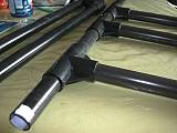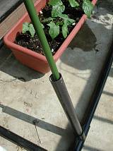 支柱を立てるパイプの継手は、テープを張りつける前にを通しておく。