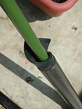 支柱を立てる。風で揺らいで音が出るのを防止する為、支柱の周囲にゴム板を差し込む。
