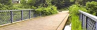橋を渡って直進すると、鴨池公園。橋を渡ってすぐ左折するとささぶねのみち。