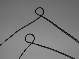 吊り下げ用のアルミ線の中央をひねって、天井のフックに掛ける輪を作る。